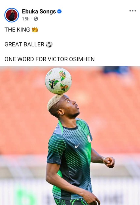 Gospel music minister Ebuka Songs has offered high praise for Nigerian football star Victor Osimhen, specifically hailing the athlete for his phenomenal and unmatched energy and drive on the field.